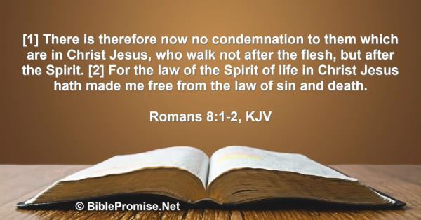 [1] There is therefore now no condemnation to them which are in Christ Jesus, who walk not after the flesh, but after the Spirit. [2] For the law of the Spirit of life in Christ Jesus hath made me free from the law of sin and death.