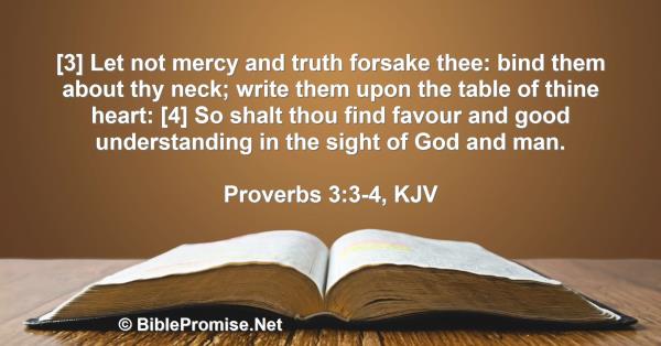 [3] Let not mercy and truth forsake thee: bind them about thy neck; write them upon the table of thine heart: [4] So shalt thou find favour and good understanding in the sight of God and man.