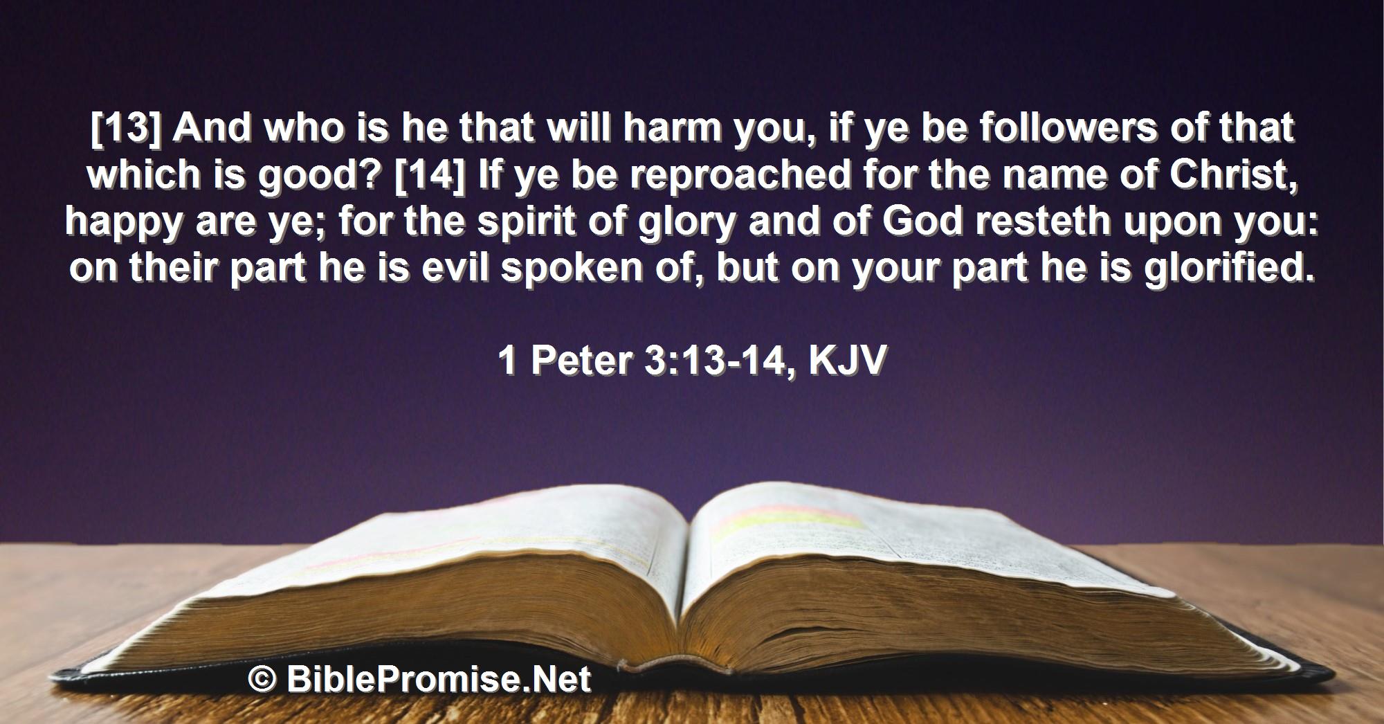 [13] And who is he that will harm you, if ye be followers of that which is good? [14] If ye be reproached for the name of Christ, happy are ye; for the spirit of glory and of God resteth upon you: on their part he is evil spoken of, but on your part he is glorified.