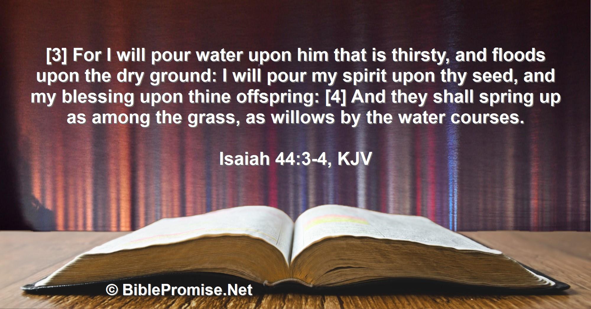 [3] For I will pour water upon him that is thirsty, and floods upon the dry ground: I will pour my spirit upon thy seed, and my blessing upon thine offspring: [4] And they shall spring up as among the grass, as willows by the water courses.
