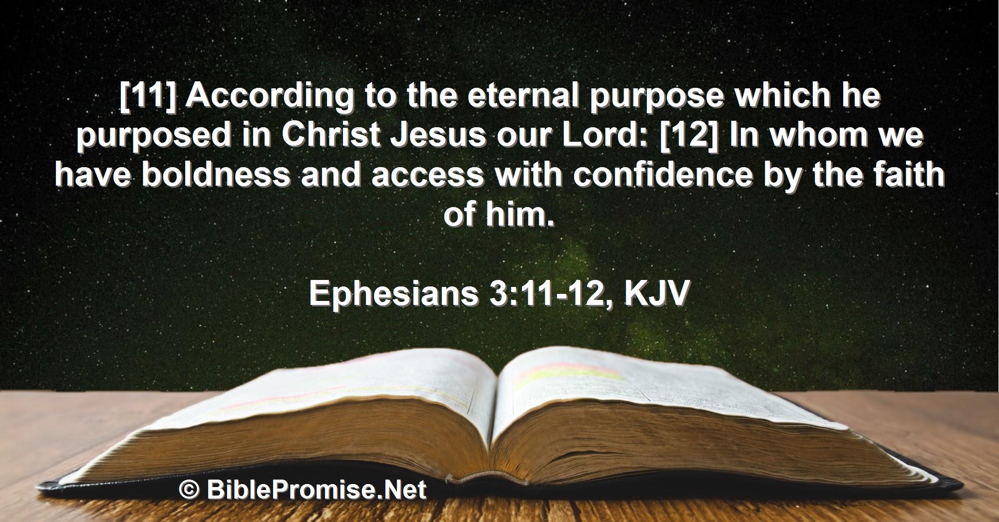 [11] According to the eternal purpose which he purposed in Christ Jesus our Lord: [12] In whom we have boldness and access with confidence by the faith of him.