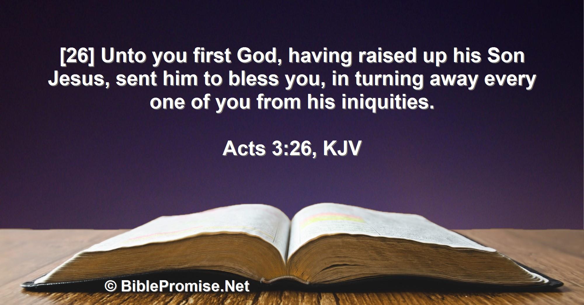 [26] Unto you first God, having raised up his Son Jesus, sent him to bless you, in turning away every one of you from his iniquities.