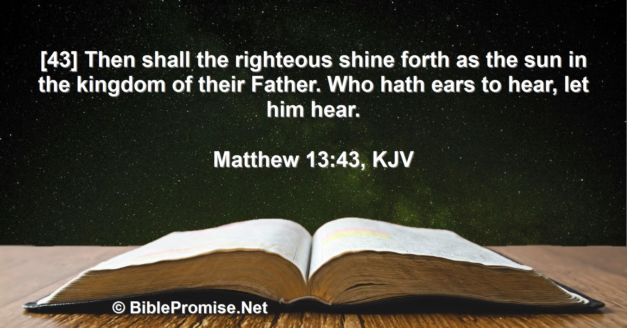 [43] Then shall the righteous shine forth as the sun in the kingdom of their Father. Who hath ears to hear, let him hear.