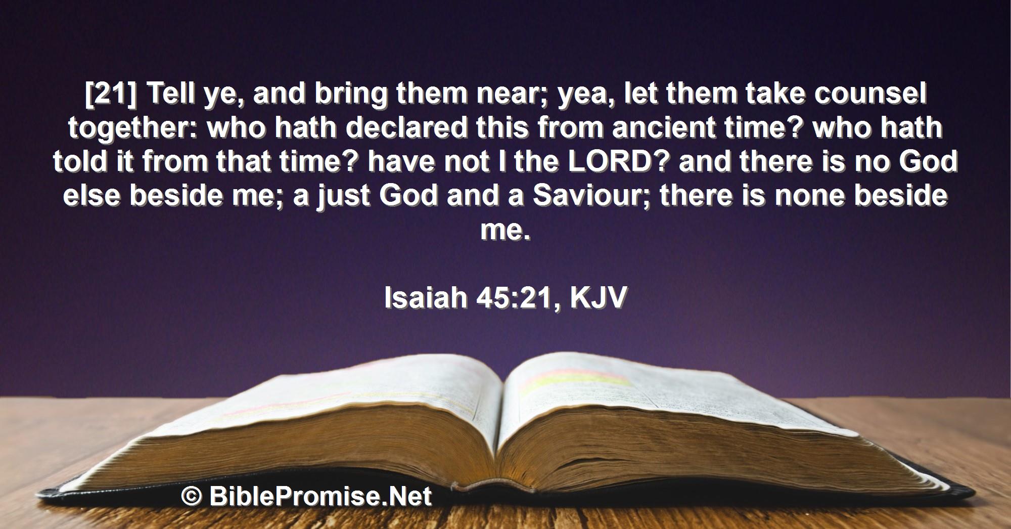 [21] Tell ye, and bring them near; yea, let them take counsel together: who hath declared this from ancient time? who hath told it from that time? have not I the LORD? and there is no God else beside me; a just God and a Saviour; there is none beside me.