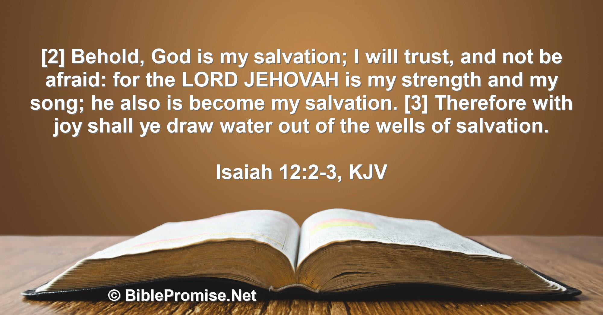 [2] Behold, God is my salvation; I will trust, and not be afraid: for the LORD JEHOVAH is my strength and my song; he also is become my salvation. [3] Therefore with joy shall ye draw water out of the wells of salvation.