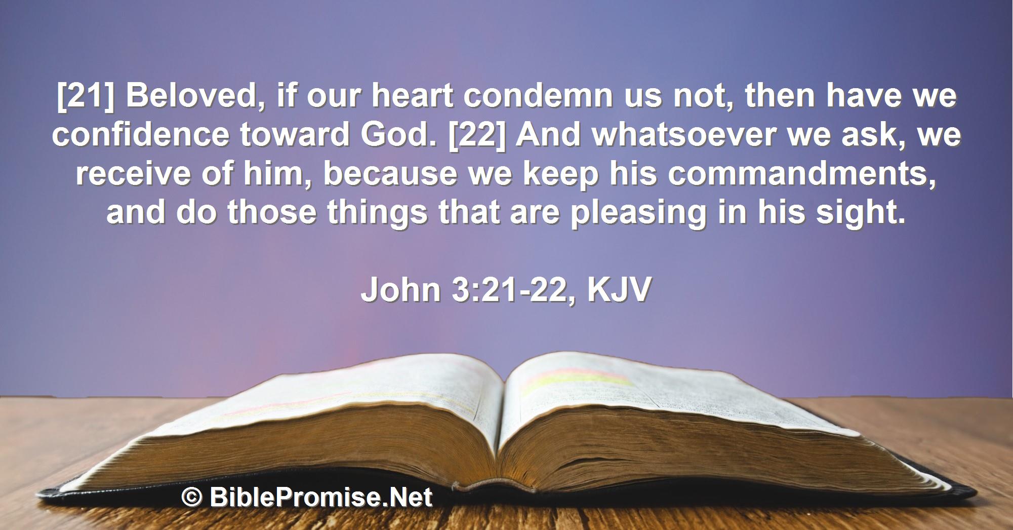 [21] Beloved, if our heart condemn us not, then have we confidence toward God. [22] And whatsoever we ask, we receive of him, because we keep his commandments, and do those things that are pleasing in his sight.
