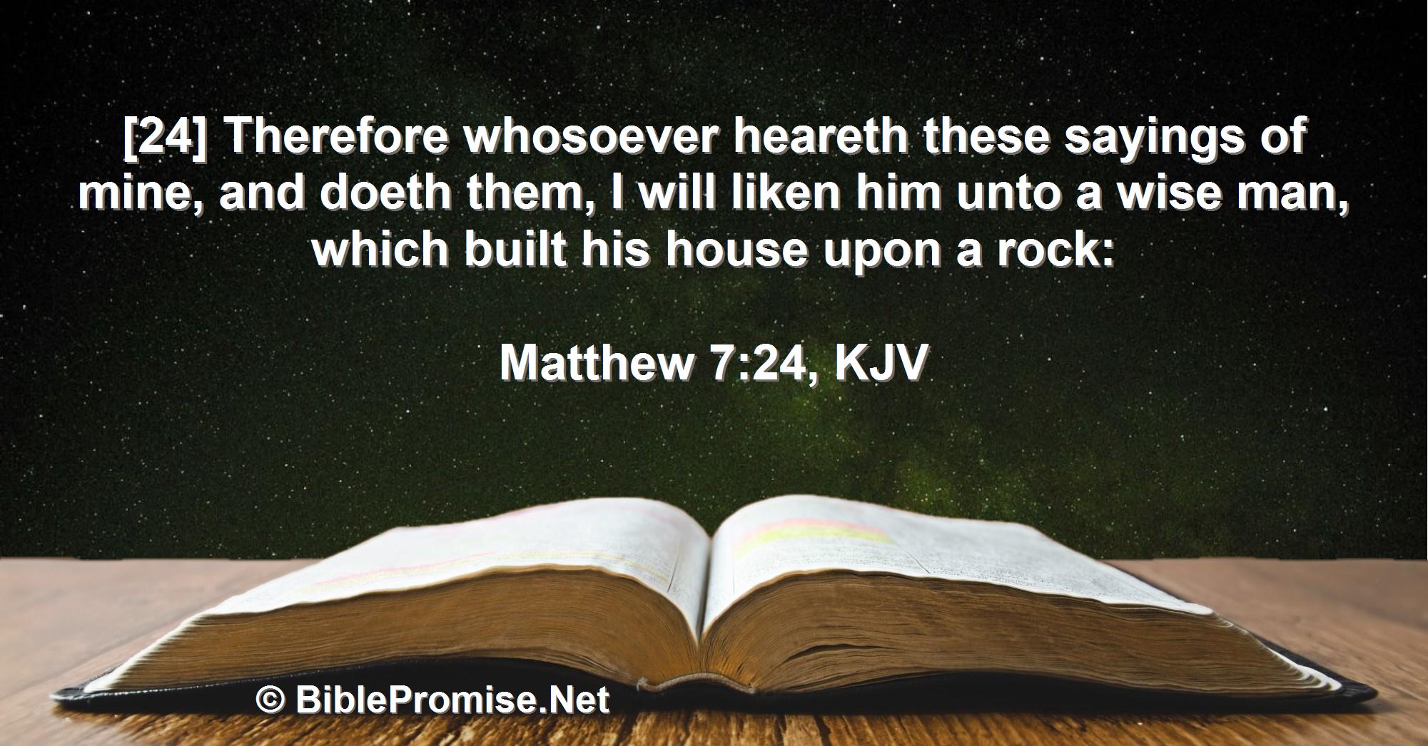[24] Therefore whosoever heareth these sayings of mine, and doeth them, I will liken him unto a wise man, which built his house upon a rock: