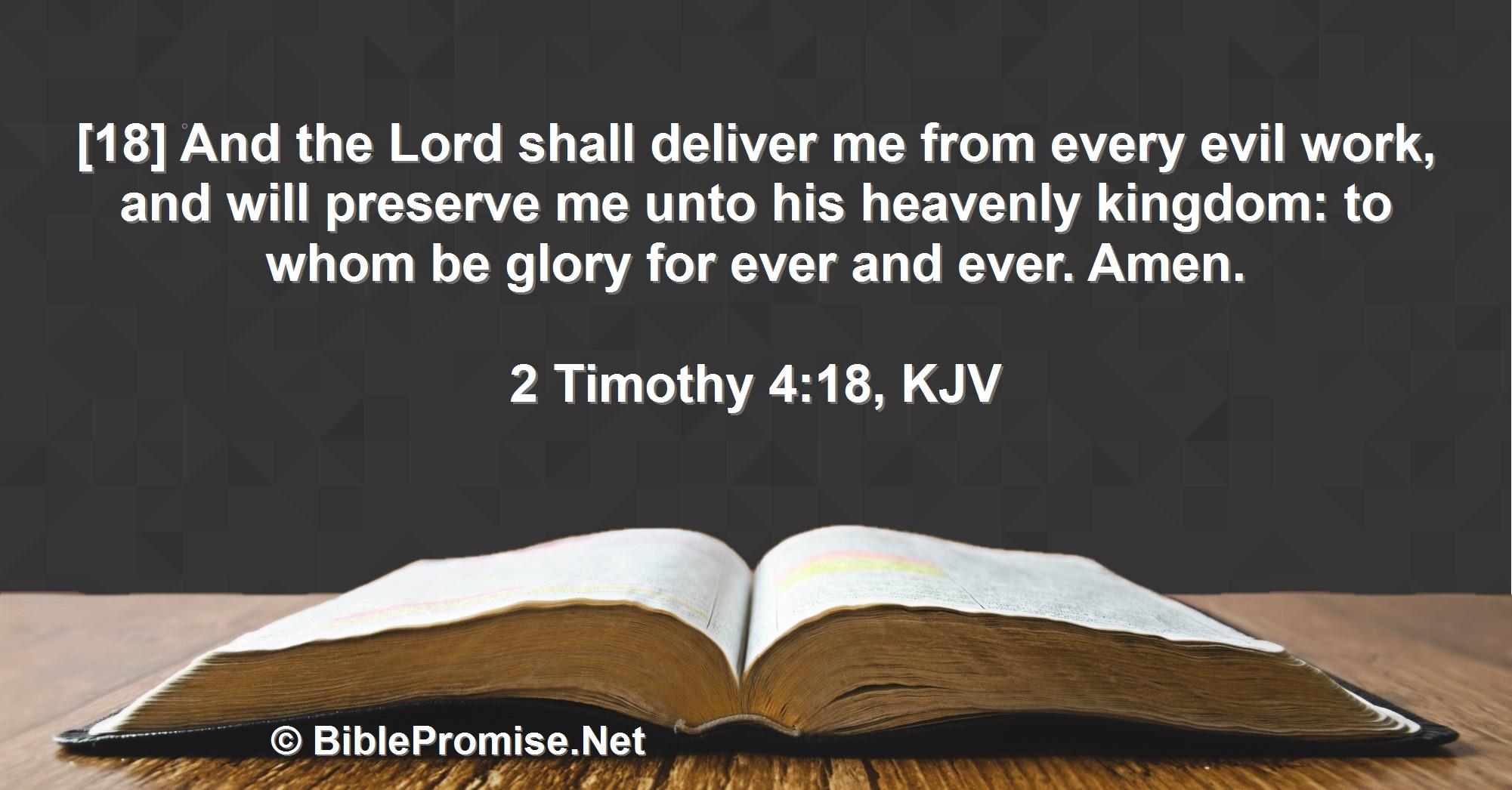 [18] And the Lord shall deliver me from every evil work, and will preserve me unto his heavenly kingdom: to whom be glory for ever and ever. Amen.