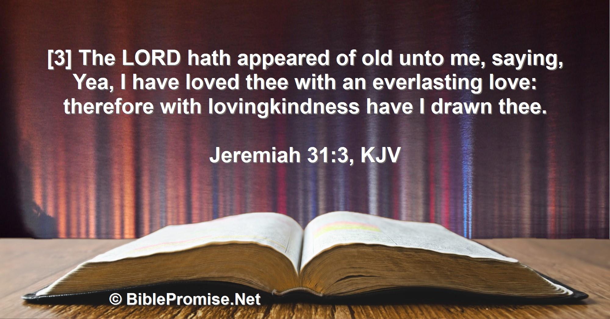 [3] The LORD hath appeared of old unto me, saying, Yea, I have loved thee with an everlasting love: therefore with lovingkindness have I drawn thee.