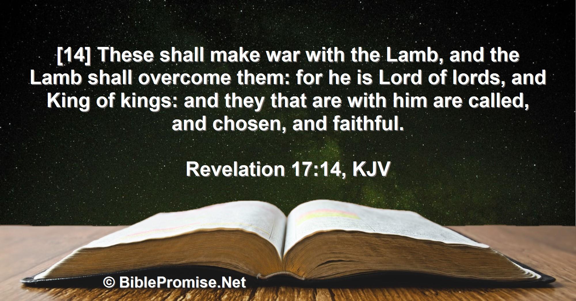 [14] These shall make war with the Lamb, and the Lamb shall overcome them: for he is Lord of lords, and King of kings: and they that are with him are called, and chosen, and faithful.