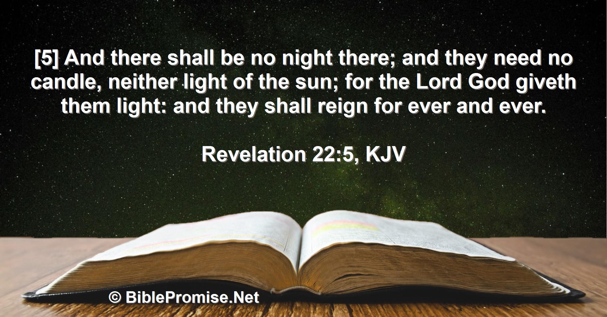 [5] And there shall be no night there; and they need no candle, neither light of the sun; for the Lord God giveth them light: and they shall reign for ever and ever.