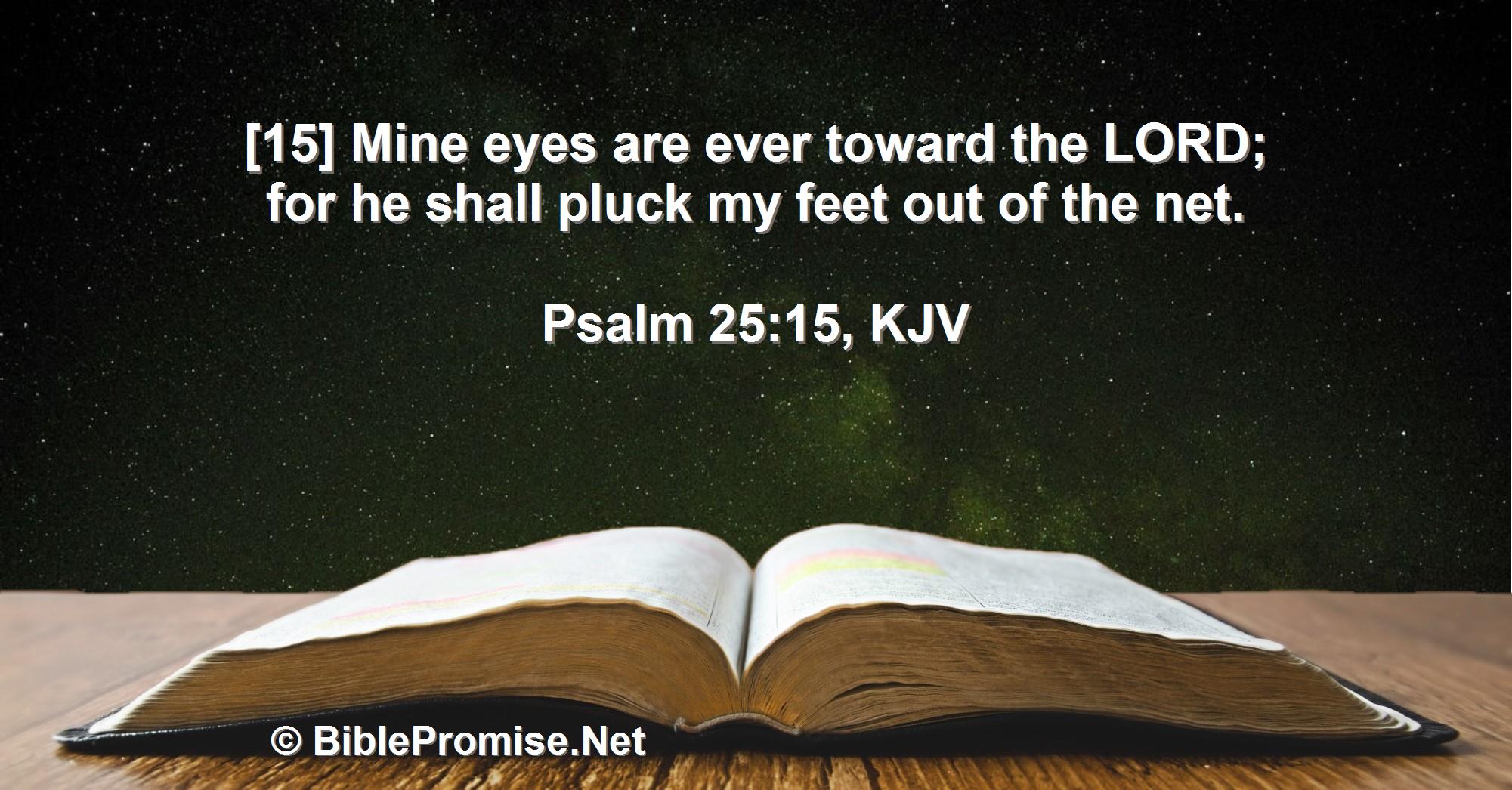 [15] Mine eyes are ever toward the LORD; for he shall pluck my feet out of the net.