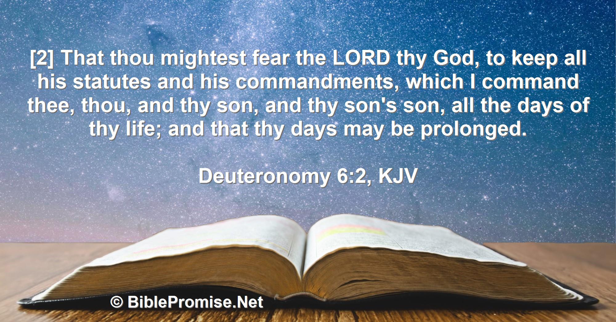 [2] That thou mightest fear the LORD thy God, to keep all his statutes and his commandments, which I command thee, thou, and thy son, and thy son's son, all the days of thy life; and that thy days may be prolonged.