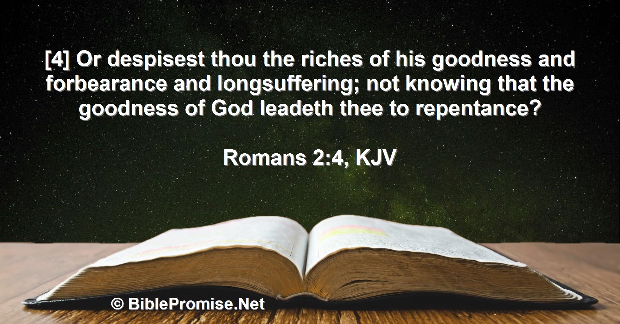[4] Or despisest thou the riches of his goodness and forbearance and longsuffering; not knowing that the goodness of God leadeth thee to repentance?