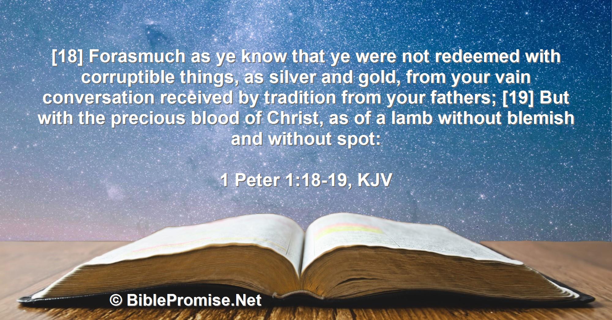 [18] Forasmuch as ye know that ye were not redeemed with corruptible things, as silver and gold, from your vain conversation received by tradition from your fathers; [19] But with the precious blood of Christ, as of a lamb without blemish and without spot: