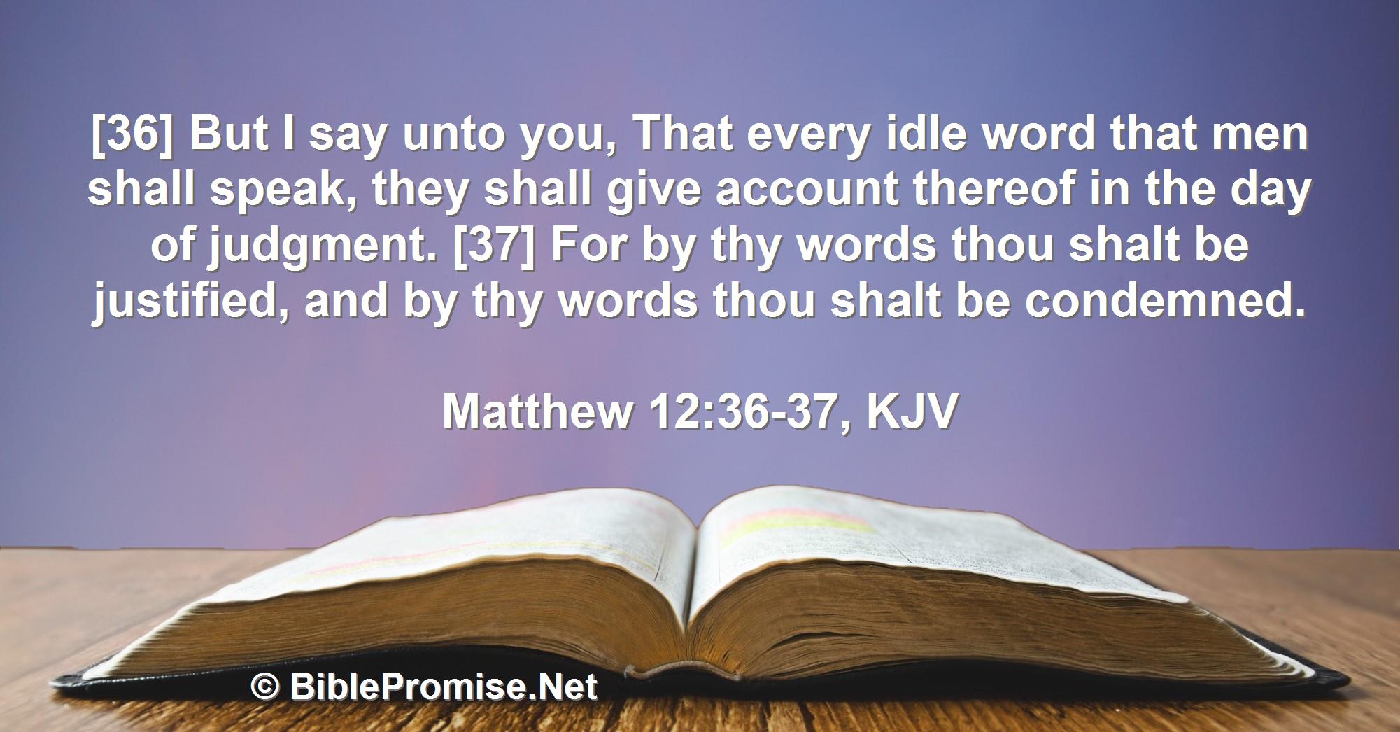 [36] But I say unto you, That every idle word that men shall speak, they shall give account thereof in the day of judgment. [37] For by thy words thou shalt be justified, and by thy words thou shalt be condemned.