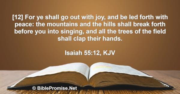 [12] For ye shall go out with joy, and be led forth with peace: the mountains and the hills shall break forth before you into singing, and all the trees of the field shall clap their hands.