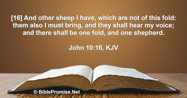 [16] And other sheep I have, which are not of this fold: them also I must bring, and they shall hear my voice; and there shall be one fold, and one shepherd.