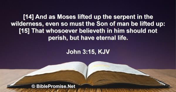 [14] And as Moses lifted up the serpent in the wilderness, even so must the Son of man be lifted up: [15] That whosoever believeth in him should not perish, but have eternal life.
