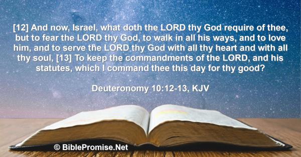 [12] And now, Israel, what doth the LORD thy God require of thee, but to fear the LORD thy God, to walk in all his ways, and to love him, and to serve the LORD thy God with all thy heart and with all thy soul, [13] To keep the commandments of the LORD, and his statutes, which I command thee this day for thy good?