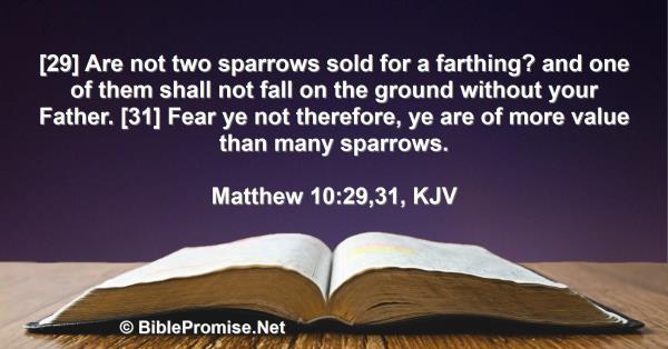 [29] Are not two sparrows sold for a farthing? and one of them shall not fall on the ground without your Father. [31] Fear ye not therefore, ye are of more value than many sparrows.
