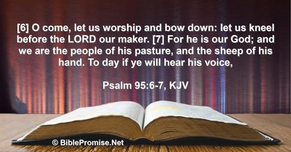 [6] O come, let us worship and bow down: let us kneel before the LORD our maker. [7] For he is our God; and we are the people of his pasture, and the sheep of his hand. To day if ye will hear his voice,
