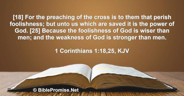 [18] For the preaching of the cross is to them that perish foolishness; but unto us which are saved it is the power of God. [25] Because the foolishness of God is wiser than men; and the weakness of God is stronger than men.